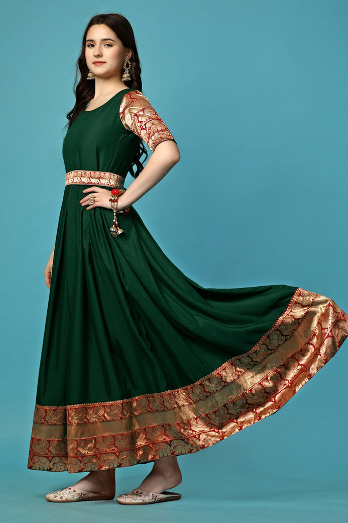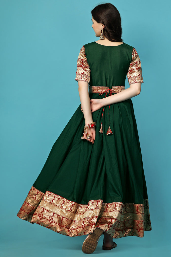 Admyrin Green Georgette Woven Stitched Anarkali Gown
