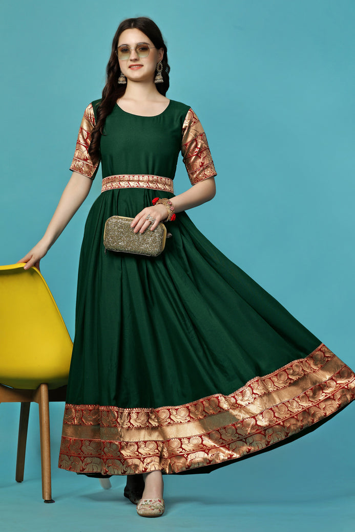 PRODUCT DESCRIPTION: Admyrin Green Georgette Woven Stitched Anarkali Gown