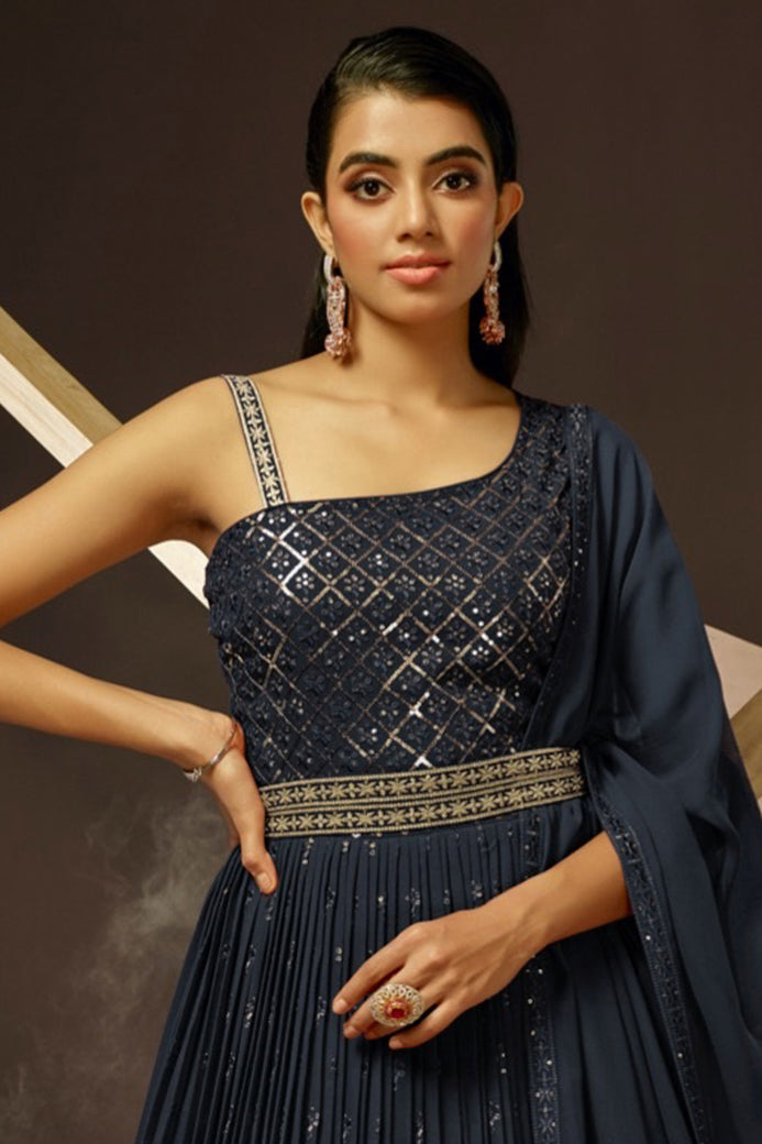 PRODUCT DESCRIPTION: Admyrin Heavy Georgette Party Wear Designer Embroidered Heavy Gown With Dupatta