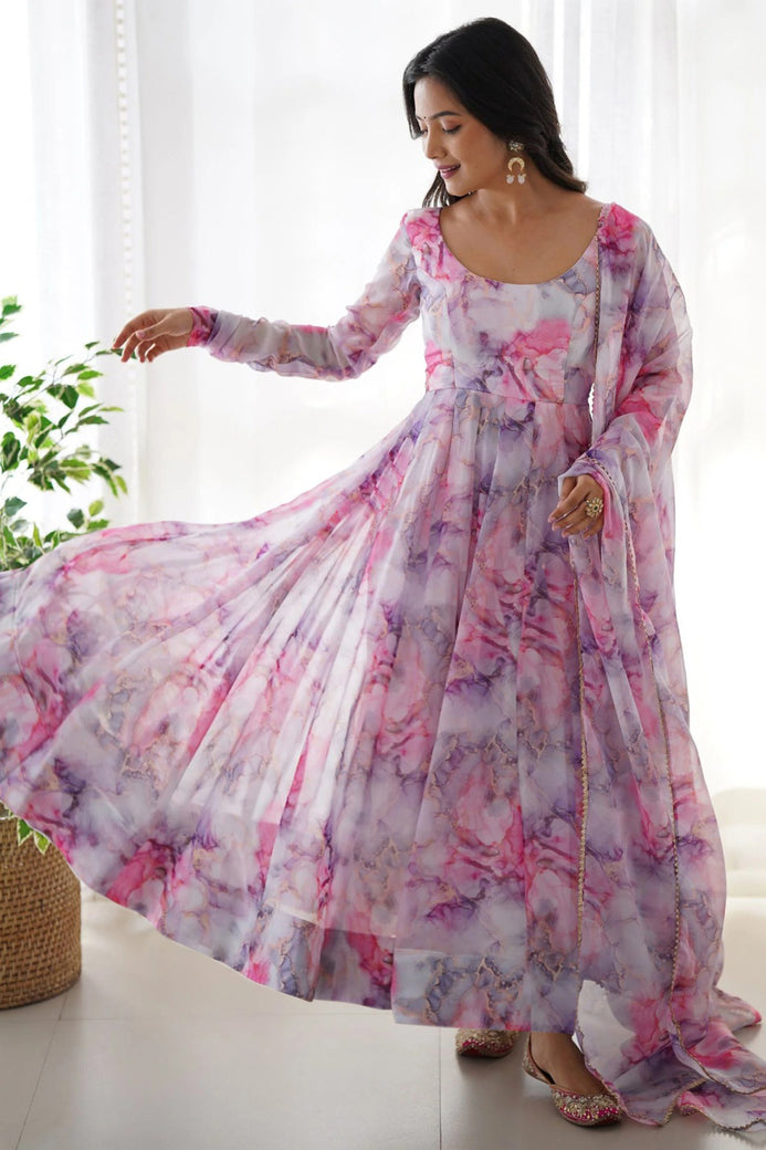 PRODUCT DESCRIPTION: Admyrin Multi colour Georgette Printed Stitched Anarkali Gown with Dupatta