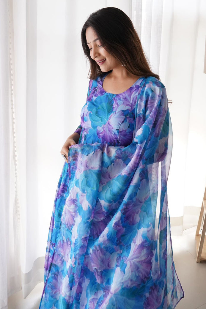 PRODUCT DESCRIPTION: Admyrin Purple Georgette Printed Ready to Wear Anarkali Gown with Dupatta