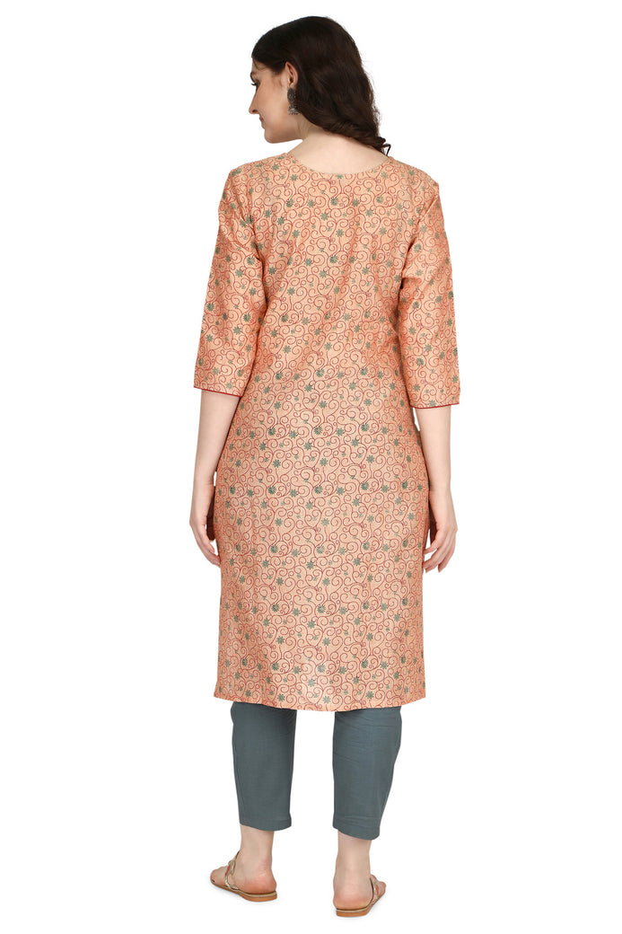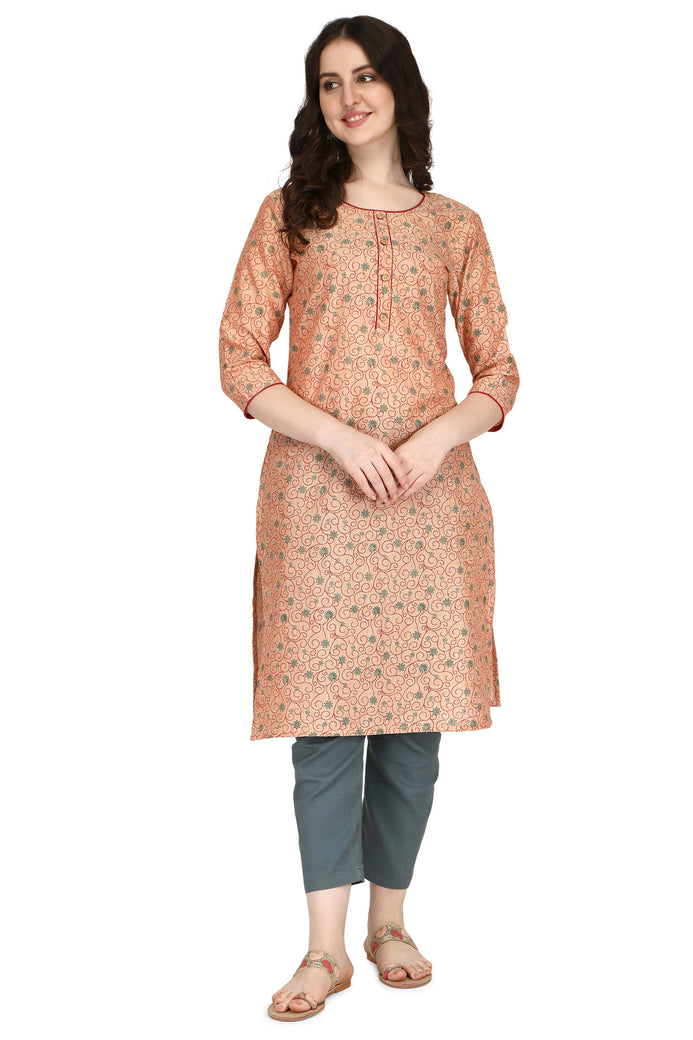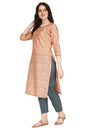 Admyrin Orange Bright & Beautiful Bhagalpuri Cotton with Block Printing Party Wear / Festive Wear Kurti