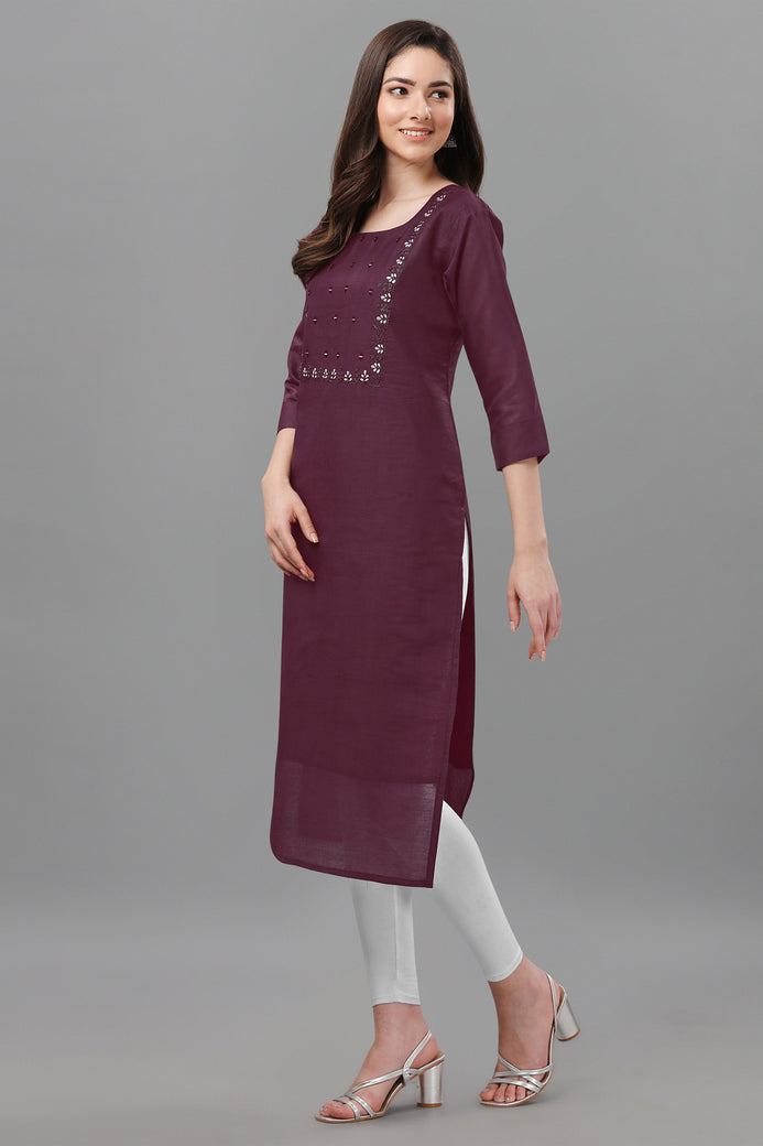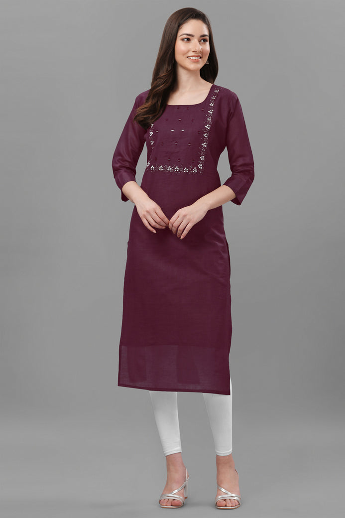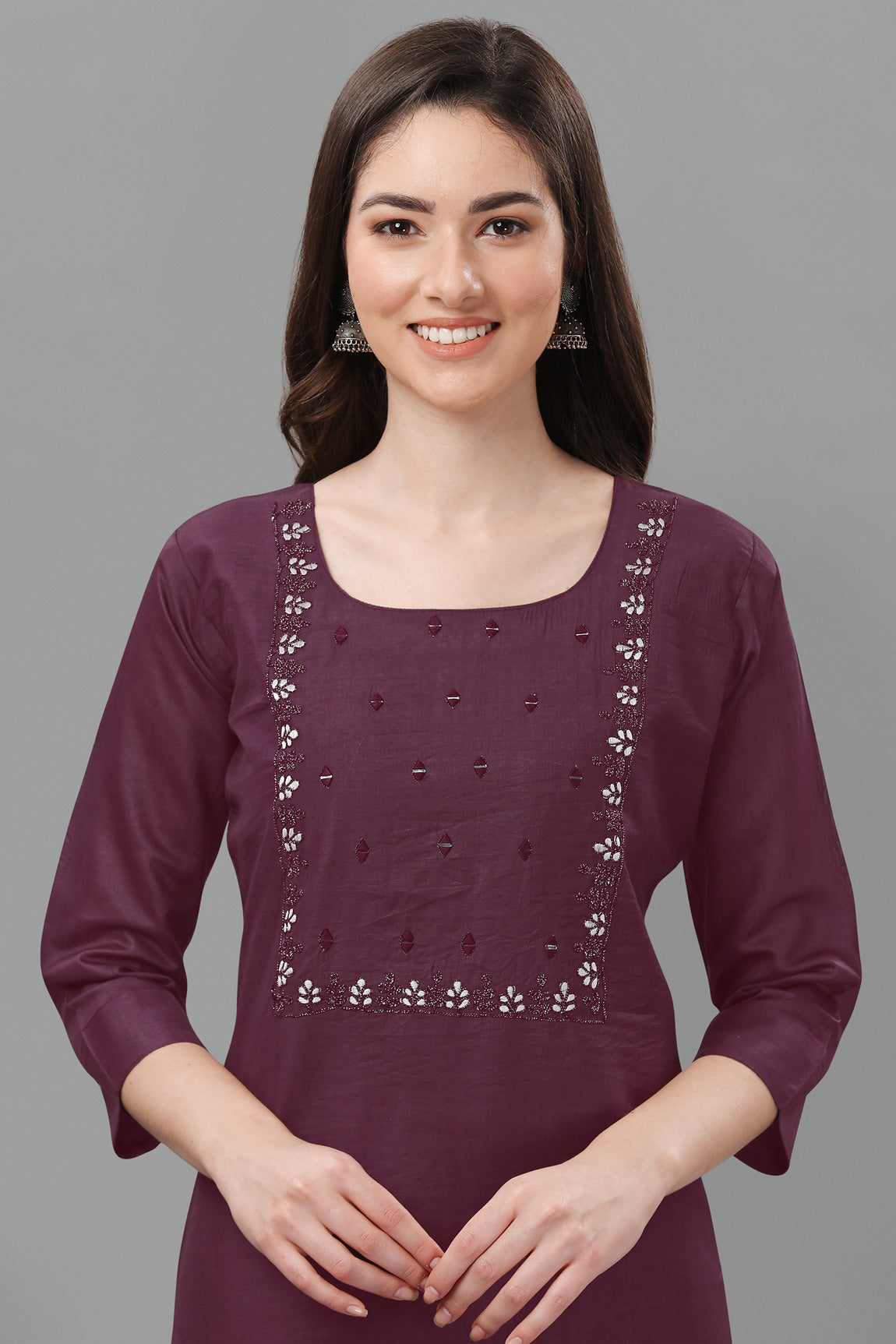 Admyrin Chanderi Cotton Hand Embroidered & Mirror Work Ready to Wear / Party Wear Kurtis