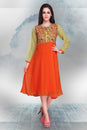 Beige and Orange Georgette Embroidered Tunic