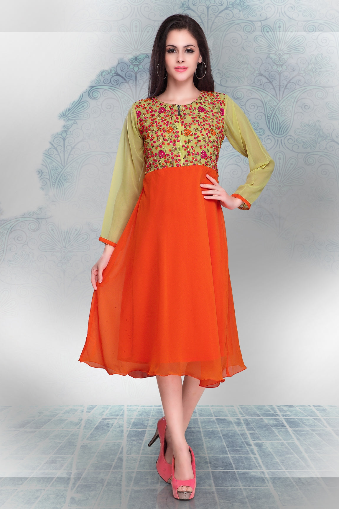 PRODUCT DESCRIPTION: Beige and Orange Georgette Embroidered Tunic