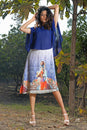 Blue Crepe Digitally Printed Tunic with Attached Blue Georgette Cape