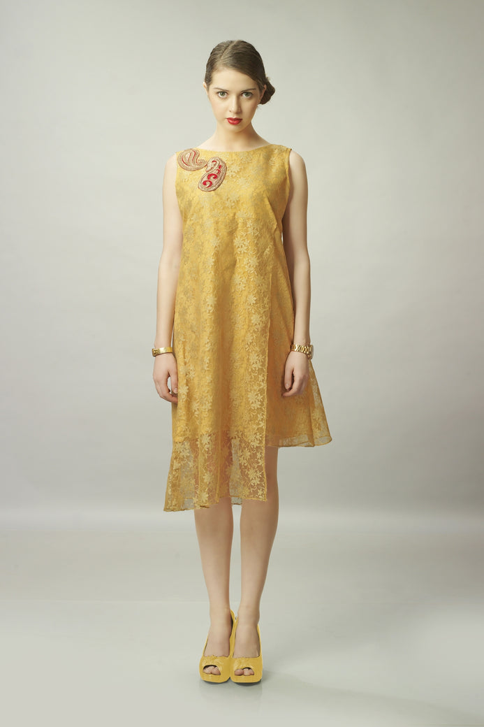 Orange Net Jacquard Sleeveless Kurti