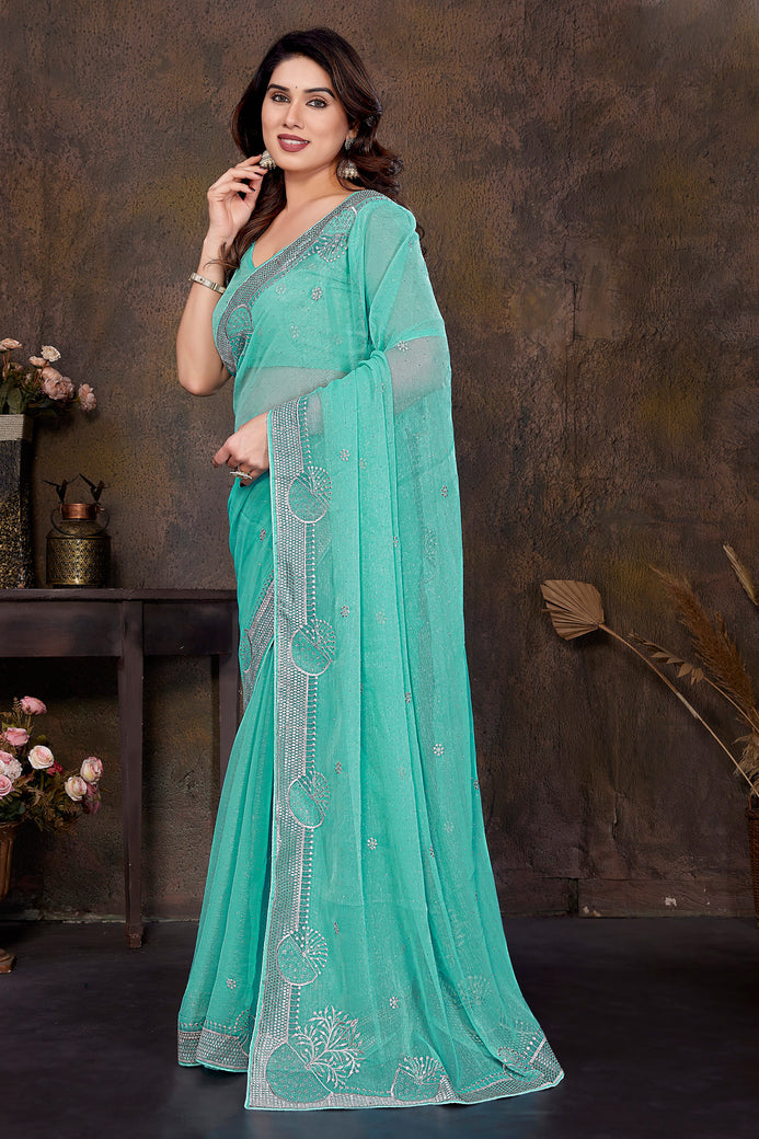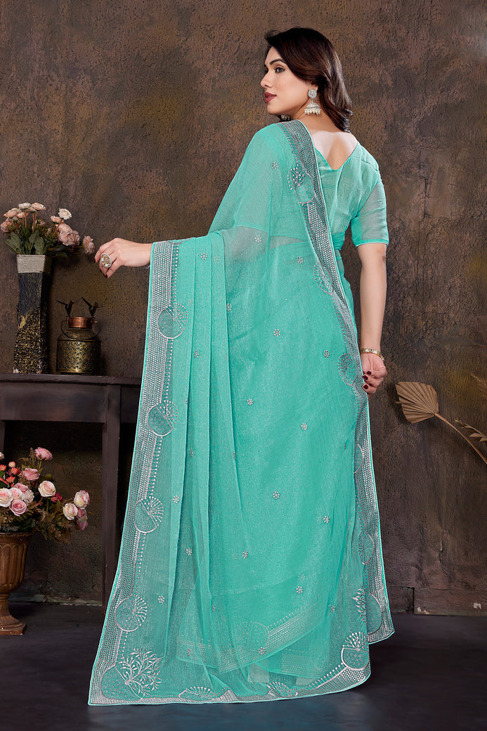 PRODUCT DESCRIPTION: Admyrin Shimmer Zari and Stone Work Designer Party Wear Saree with Blouse Piece